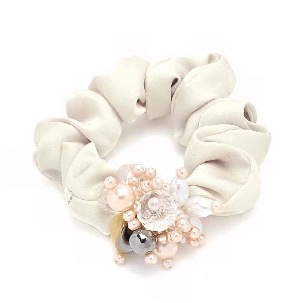 ボリュームビーズ付シュシュ アイボリー