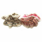 カントリー調の生地にピコレースをつけたかわいいシュシュです。