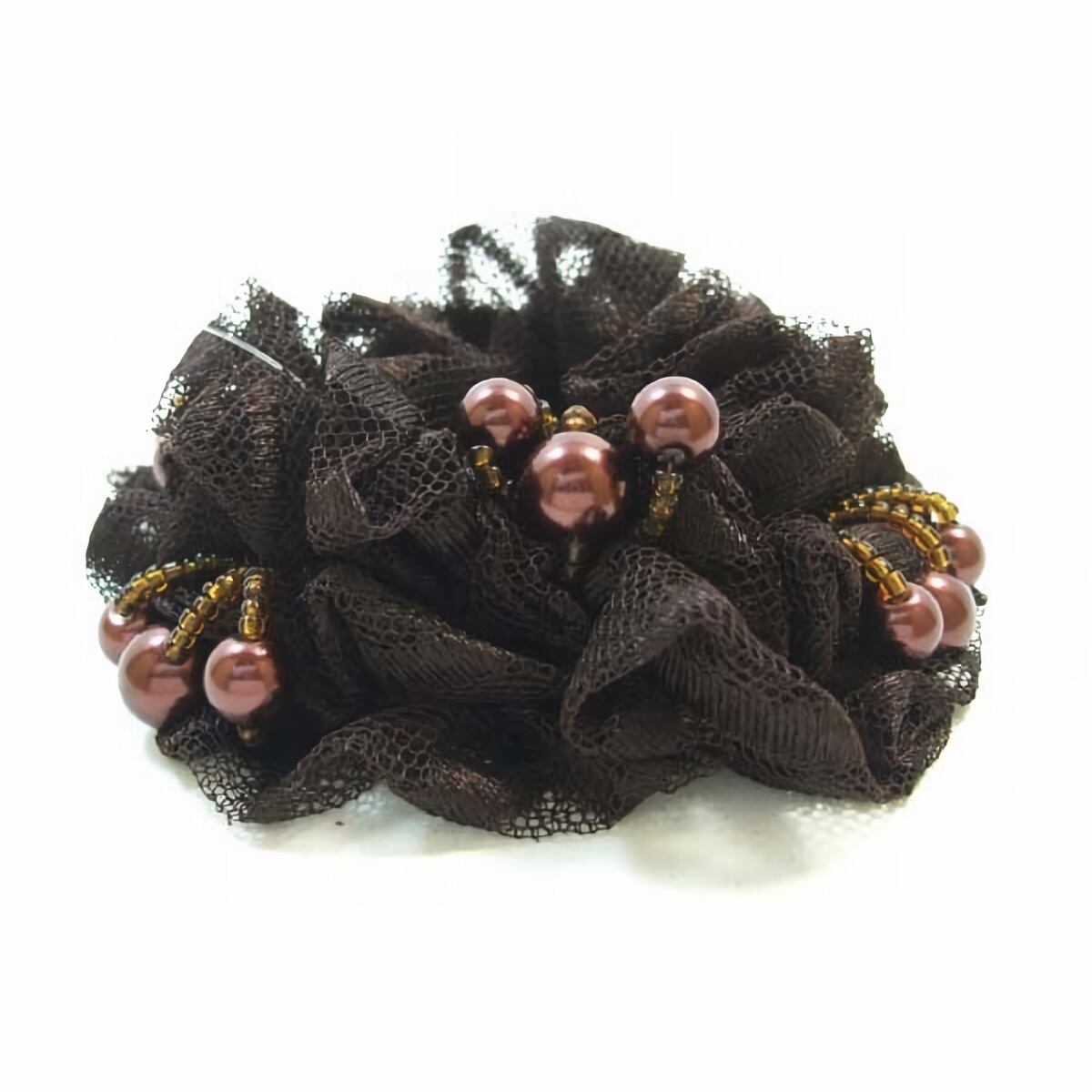 【クリアランス】鈴なりビーズ メッシュボリュームシュシュ ブラウン