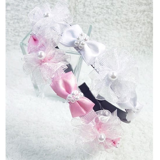 艶やかなサテンと華やかなオーガンジーリボンが組み合わさった、姫系のカチューシャです。