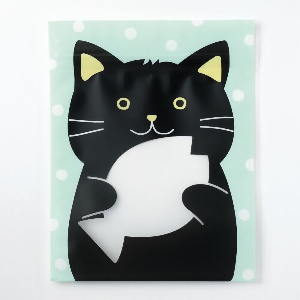 中身がちょこっと見えるジッパーバッグ くり抜きタイプ 黒猫 ジップバッグ キャット ネコ