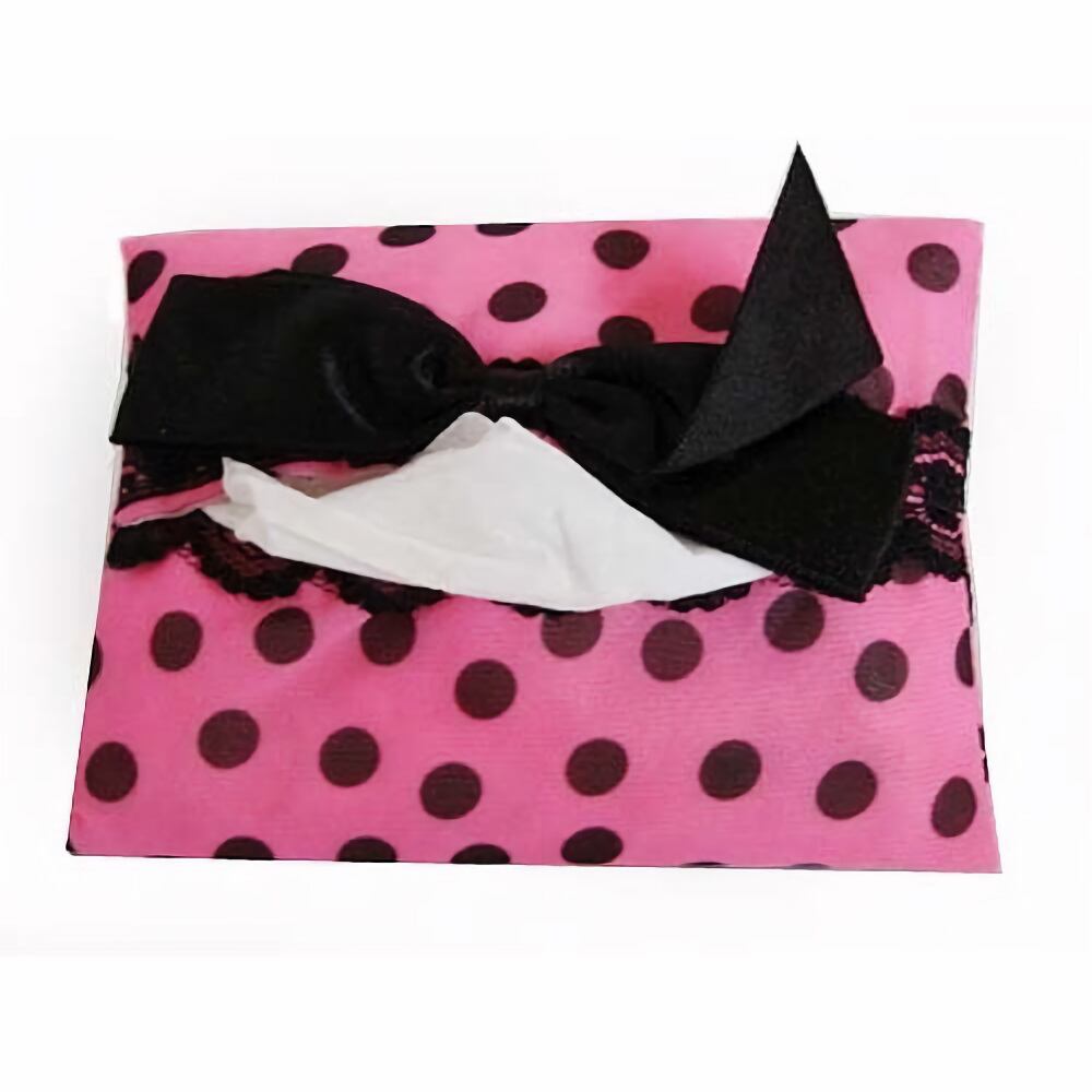 ポップなピンクに可愛らしいドット柄、そしてリボンのアクセントが魅力的なポケットティッシュカバーです。