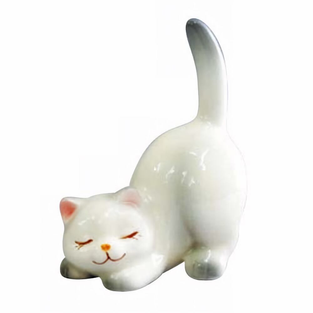 猫の置物 リングホルダー 白猫 キャットオーナメント ネコ キャット