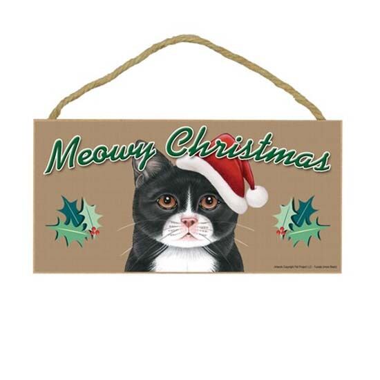 アメリカ直輸入 木製クリスマスプレート 白黒猫 キャット ネコ