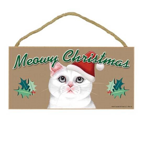 アメリカ直輸入 木製クリスマスプレート 白猫 キャット ネコ