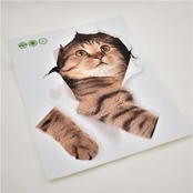 可愛い子猫が飛び出してくるような立体画像のステッカーです。