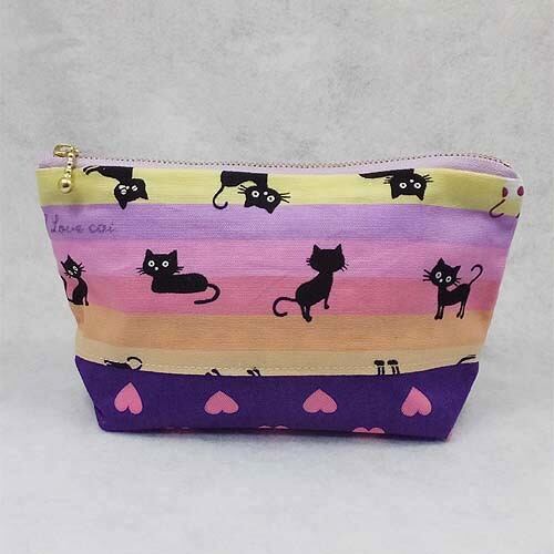 ハンドメイド 猫&ハート柄立体ポーチ 18cm B ネコ キャット