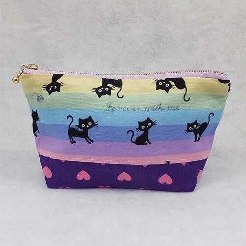 ハンドメイド 猫&ハート柄立体ポーチ 18cm A ネコ キャット