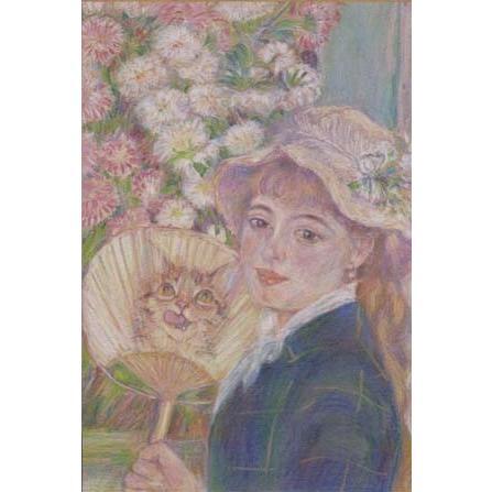 ポストカードNo390・「猫団扇を持つ少女」 目羅健嗣 猫イラスト