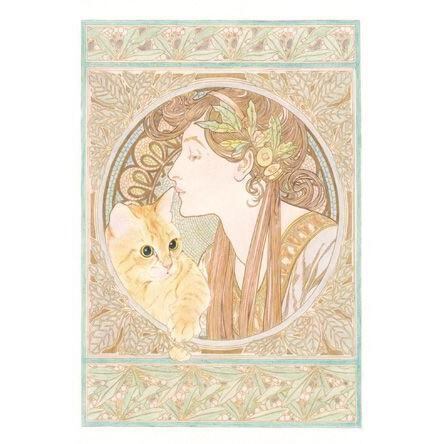 ポストカードNo.129・「吐息でネコ」 目羅健嗣 猫イラスト