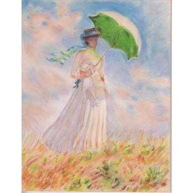 ポストカードNo.098・「日傘と猫を持つ女性」 目羅健嗣 猫イラスト